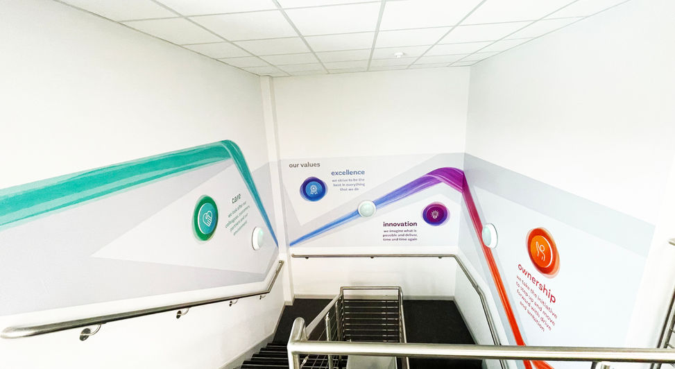 This job had a tight deadline to meet, in order to align with the launch of Copley Scientific’s internal brand values. This gave us approximately a month and a half to turn this around, from production to installation. Our team completed this job with careful consideration of this deadline, as we know the importance of timing for any company’s brand launch.